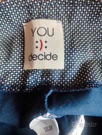 Modello wide leg (a gamba ampia) caratterizzati da una vita alta con cintura coordinata e un micro pattern testurizzato dai colori bianco e blu. Articolo in cotone e made in Italy del brand You Decide, perfetto per la stagione primaverile.