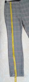 Eleganti pantaloni da donna firmati ZARA, modello a quadri grigi con taglio dritto e vestibilità slim. Tessuto morbido e strutturato, perfetto per look da ufficio o outfit casual chic. Vita media, chiusura frontale invisibile, tasche laterali. Fantasia check tono su tono, raffinata e senza tempo.