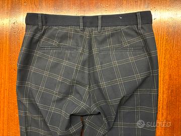 Vendo pantaloni da uomo, stile elegante/casual, fantasia a quadri su fondo scuro.