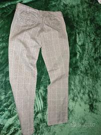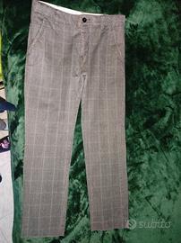 Pantaloni Zara con taglio classico ma contemporaneo, caratterizzato da una fantasia a quadri grigi chiari su sfondo grigio più scuro. Il tessuto ottimo (dettagli in foto), ideali per garantire comfort e una vestibilità pulita. La vita è rifinita con passanti per la cintura e una chiusura con bottone e zip, mentre la lunghezza arriva sopra la caviglia, conferendo un tocco moderno. Sono perfetti per un look smart casual, abbinati a una camicia o una polo, o per un outfit più formale con una giacca coordinata.