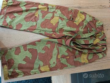 Pantalone esercito italiano in dotazione a reparti operativi paracadutisti e carabinieri dagli anni 60 in avanti. Condizioni pari al nuovo. Colori brillanti, mai usati nessuno strappo o scucitura