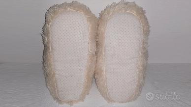 Pantofole bianche a forma di renna - in peluche, morbide e antiscivolo.