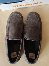 Pantofole in velluto da camera con fondo in gomma antiscivolo taglia 42. Essendo chiuse, sono molto più sicure di una ciabatta aperta che può sfilarsi. Molto comode, leggere e confortevoli, adatte e richieste anche negli ospedali ed istituti di riabilitazione o case di riposo.