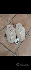 Ciabatte morbide peluches di colore beige con orecchie raffiguranti un tenero gattino/unicorno. Taglia 40-41. Flying Tiger. Molto morbide e calde. Nuove con cartellino