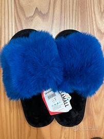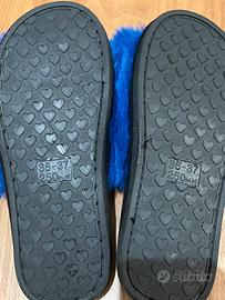 Pantofole con morbidissima pelliccia blu elettrico. Calde e alla moda. Nuove mai usate con cartellino (anche se si è staccato). Numero 36/37