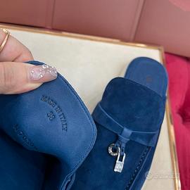 Pantofole da donna Loro Piana Babouche Charms Walk con punta arrotondata, eleganti e raffinate, in montone con suola in gomma, resistenti agli odori e ad asciugatura rapida. Colore: Blu scuro Taglia: 38 Nuove, con confezione regalo, mai usate Spedizione entro 1-3 giorni dall'acquisto