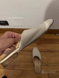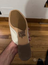 Vendo pantofole in pelle, sia internamente che esternamente, da uomo, colore bianco. Misura interna 27 cm. Con tacco in legno di 2 cm
