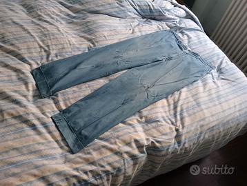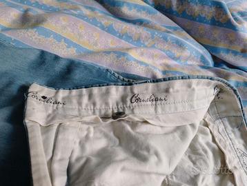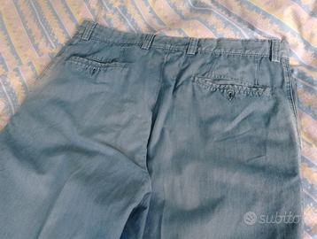Vendo splendido pantalone uomo Corneliani - Tg.48 - eccellenza sartoriale italiana. Originale, realizzato in un cotone 100% di finissima qualità, con una mano estremamente leggera e impalpabile, garantisce il massimo del comfort e dello stile per l'estate, anche nelle giornate più calde, fresco e super traspirante. Eccellente costruzione sartoriale: interno vita rifinito con nastro logato, bottoni personalizzati e cura delle cuciture interne, tasche posteriori a filetto. * Per trasparenza unico piccolo appunto mancano i 2 bottoncini tasche posteriori. In raffinato azzurro avio/denim chiaro con effetto leggermente "mosso", sofisticato effetto "sfumato/delavé" che dona al capo un aspetto estivo e rilassato, pur mantenendo il taglio elegante. È un azzurro polveroso con una bellissima resa cromatica naturale, perfetto per un look estivo elegante e disinvolto. * MISURE (prese in piano): - Vita: 43 cm - Lunghezza: 100 cm (+4,5 cm tessuto risvolto esterno) - Fondo (orlo): 19 cm Condizioni ottime! perfetto per inutilizzo e conservato con cura, purtroppo ho perso una taglia da un anno e mi veste grande, altrimenti non me ne separerei! Un pezzo di alta classe e comfort per un guardaroba maschile ricercato. Top Cotone extra-light "effetto seta", fresco e con un ottimo drape (cade perfettamente senza irrigidirsi) Istruzioni di Lavaggio: Il capo è pratico perché può essere lavato in acqua a 30°, oltre che a secco. Questo è un grande vantaggio per un pantalone estivo in puro cotone. Cura: non va in asciugatrice e va stirato a bassa temperatura per mantenere la fibra del cotone integra e leggera.