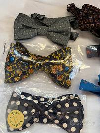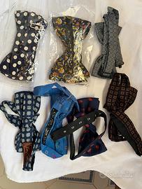 Papillon 7 di pura seta , made in italy , farfalla fissa , cinturino regolabile. Vendo in blocco oppure a 3 a 3. Euro 18 per tre papillon Euro 7 solo uno .