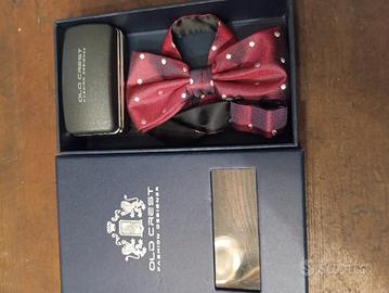 Papillon nero pois rossi e cravatta bianca. Set papillon Old Crest fashion designer con abbinato i gemelli. Cravatta bianca . Per spedizione e informazione 3392101948