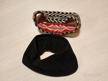 Parafronte a fascia 2 pezzi, 1 in lana fantasia doubleface e 1 in pile nero sagomato per orecchie, utili e comodi per attività outdoor e sportive, usati poco e lavati, vendo insieme a euro 8,00.
