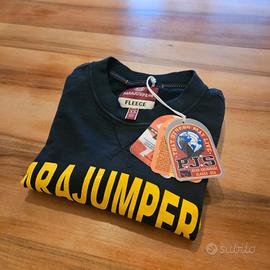 Felpa Parajumpers blu con logo giallo frontale e patch iconica sulla manica. Modello girocollo con interno felpato, nuovo con cartellino. Taglia: S Colore: Blu navy Condizioni: Nuovo con cartellino Vestibilità: Regular fit Perfetta per outfit streetwear e casual, qualità premium tipica Parajumpers. É un Xs ma veste come S un pochino stretto