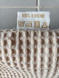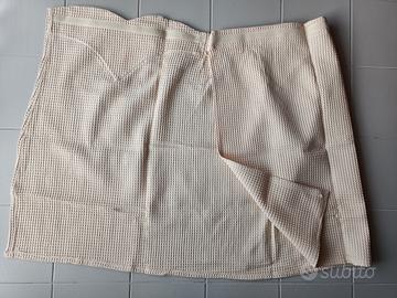 Pareo/asciugamano donna LINEA ORO nido d'ape, 100% cotone, colore ecru, con ricamo senape altezza seno, scollatura a cuore, con elastico a scomparsa dietro e con strappo adesivo interno per regolare la larghezza. Misure: larghezza sotto 1,46, lunghezza dall'altezza seno in giù 71cm. Nuovo mai usato. Prezzo €25. Contattare tramite subito.