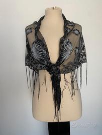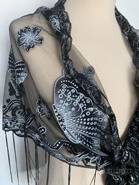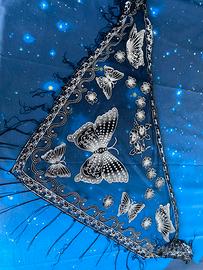 Pareo copricostume scialle triangolo nero farfalle