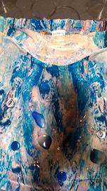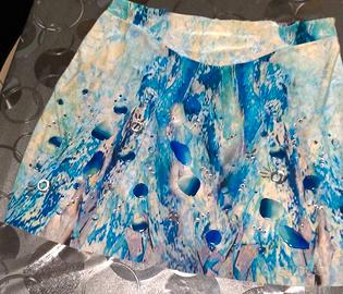 Gonna copricostume fantasia blu acqua -Applicazione gocce d'acqua in gomma - La Perla - taglia 46 (vita in estensione totale 110 cm. h 42 cm ) in poliestere -Motivo sul davanti ed elastico su dietro - Mai usata