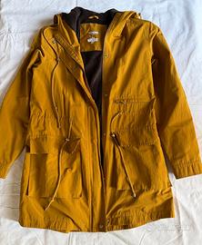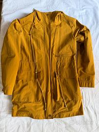 Vendo parka originale Aker color giallo senape/ocra. Il capo è stato utilizzato, ma è molto ben conservato e non presenta difetti, macchie o segni d'usura evidenti. Marca: Aker (alta qualità). Taglia: 38 (corrisponde a una 42 italiana / M Regolabile: Coulisse in vita per regolare la vestibilità. Chiusura: Zip perfettamente funzionante e bottoni a pressione.