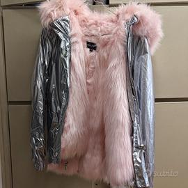 parka taglia s, colore argento... interno in pelliccia sintetica colore rosa chiaro, molto caldo. usato un paio di volte