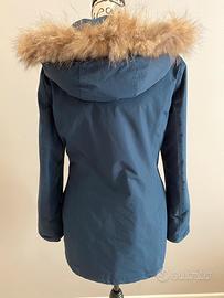 Parka blu con cappuccio My Stuff; 100% poliestere. Donna taglia M. Usato ma ben conservato.