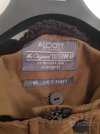 Bel giubbotto parka colore verde cachi o kaki, interno morbido e caldo + cappuccio con interno "finto pellicciato" (si può togliere, ha i bottoni).
