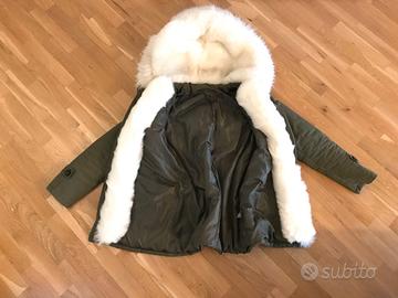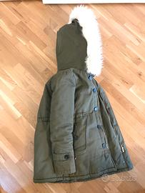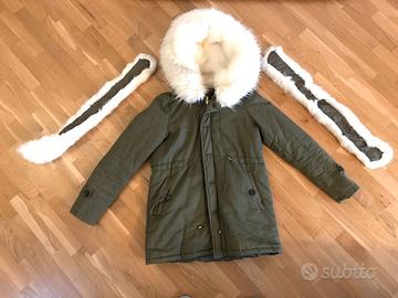 Vendo causa inutilizzo parka invernale da donna, colore verde militare, con cappuccio e interno in pelliccia sintetica bianca, taglia 3^/M. Molto caldo, morbido e comodo, perfetto per l’inverno. Caratteristiche Colore: verde militare Pelliccia sintetica bianca molto soffice Cappuccio ampio e avvolgente Inserti in pelliccia removibili (come da foto) Tasche frontali con bottoni Chiusura zip + bottoni Coulisse in vita per regolare la vestibilità Esterno 100% cotone Interno 100% poliestere Condizioni Ottime condizioni, usato poco Nessun difetto, nessuno strappo Prezzo 45 € trattabili Spedizione rapida imballo sicuro!