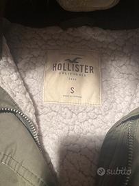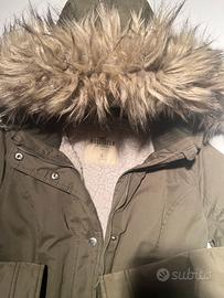 PARKA HOLLISTER verde oliva con cappuccio, fodera in sherpa e pelliccia sintetica taglia S. Come nuovo