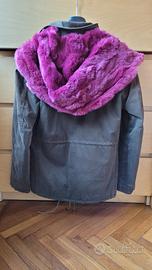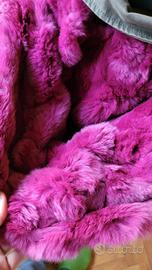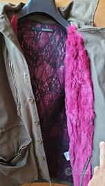 Parka di AnnaRita N, taglia 42, esterno in tessuto cachi, interni in piumino color rosa rivestito di pizzo, bordi in pelliccia di coniglio color rosa, grande cappuccio staccabile foderato sempre in pelliccia. Buone condizioni, usato pochissimo. Si può vedere a Torino