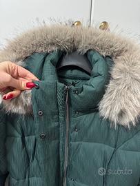 Parka donna con piumino sintetico Colore verde Tg M Pelliccia amovibile Lunghezza 90 Maniche 62 Nuovo con cartellino campionario