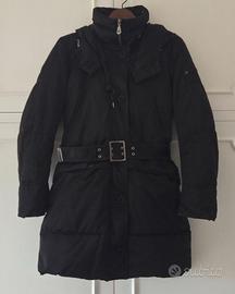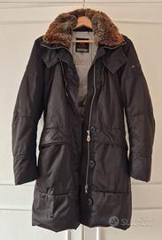 PARKA DONNA PEUTEREY. Modello con collo in pelliccia di coniglio e imbottitura 100% piumino d'oca. Con due tasche laterali con patta e zip, due tasche laterali a filetto, una tasca interna, una mini tasca interna, collo staccabile e cappuccio staccabile. Chiusura con zip, bottoni e cintura. Colore nero, taglia 44, come nuovo. Euro 121. Parka da collezione, non in commercio. ULTIMO ARTICOLO, IL PREZZO PIÙ BASSO DEL WEB