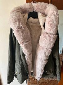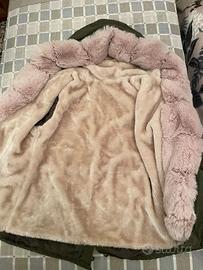 Parka donna Taglia M. Come nuovo. Colore verdone, con pelliccia rosa chiaro all'interno. Pelliccia removibile. Ritiro a MESTRE, zona Terraglio