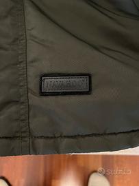 Giaccone brand vegan Navahoo, modello parka, tessuto verde impermeabile, interno in pelo morbido è caldo, doppia chiusura cerniera e bottoni automatici, maniche dritte con polsino interno in lana, cappuccio, straccabile con cerniera, con interno in pelo, tasche chiuse con cerniera o bottoni, taschino interno per telefono e foro per far uscire tcuffiette.. Usato pochissimo, condizioni perfette. Disponibile per misure e altre foto. Misura adatta anche per ragazzina.