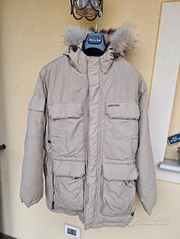 Parka da UOMO in vera piuma marca GEOX , color beige, 8 tasche davanti di cui 4 con cerniera , cappuccio con pelo , polsini elasticizzati