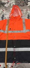 Parka Sottozero da uomo impermeabile, Catarifrangente, impermeabile e antivento con cappuccio richiudibile ideale per le giornate fredde. - Colore principale arancione con dettagli neri. - Taglia M. - Materiale riflettente per una maggiore visibilità.