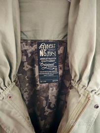 BellissimoParka Guessoriginale in un intramontabileverde militare/salvia, perfetto per le mezze stagioni con dettagli femminili unici.