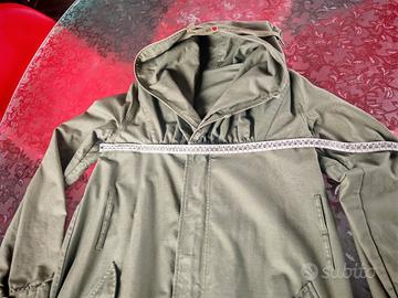 Ampio collo a imbuto con arricciatura, che può essere portato alto per proteggersi dal vento o aperto per un look più rilassato,fodera conmotivo camouflage(mimetico) super trendy che si intravede quando la giacca è aperta, chiusura con zip robusta e bottoni a pressione, tasche frontali capienti e polsini con bottone.