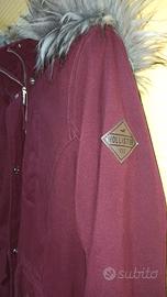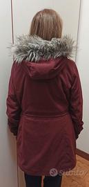Parka Hollister Stretch Linked Sherpa giacca giaccone con cappuccio, taglia Large da donna, colore bordeaux, maniche con polsino, comoda fodera in pelliccia ecologica, tasche varie, zip, bottini, collo alto, coulisse in vita, Classic Fit, usato, uniprò. Prezzo Euro 50,00. Consegna a mano su Roma.