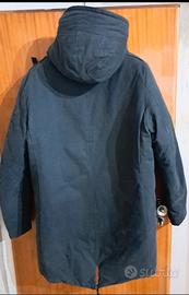 Parka invernale firmato SCERVINO Street, colore nero, dal design pulito e funzionale. Modello caldo e confortevole, ideale per l’inverno, con imbottitura interna trapuntata, cappuccio e chiusura completa con zip + bottoni.