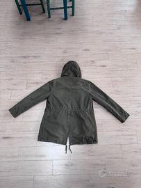 Parka uomo marca J. Dembar, esterno 100% cotone, fodera interna in poliestere. Colore verde scuro con interno in pelliccia bianca panna, taglia XXL. Misure: spalle circa 54 cm, altezza circa 80 cm. Condizioni ottime. Giacca pesante e calda, ideale per inverno o stagione fredda, look outdoor o urban