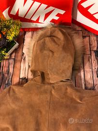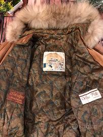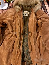 Vendo splendido parka Unisex vintage in vera pelle scamosciata (Suede) di altissima qualità, produzione artigianale italiana (Idealpel - Made in Italy). Il capo è di un bellissimo color tabacco/cammello, ideale per l'inverno grazie alla fodera interna trapuntata e al caldo cappuccio con bordo in pelliccia.