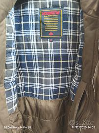 Design Funzionale: Colore fango/militare versatile, cappuccio protettivo e chiusura doppia con zip e bottoni personalizzati.