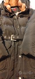 Vendesi parka nero usato 2 volte per donna lungo e sportivo con cappuccio staccabile tasche laterali e cintura in vita taglia 52 ma veste un po' piccolo .