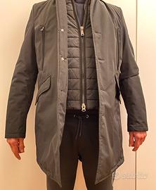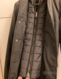 Parka nero taglia M nuovo regolar fit 48/50 esterno 100% poliestere con imbottitura interna rimovibile con zip perfetto per l'inverno e la primavera due tasche con patta esterne e due tasche con zip spacco posteriore con due bottoni automatici Perfetto, molto bello