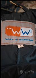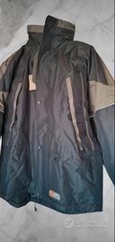 Parka o giacca da lavoro per uomo , tecnica, nuova con cartellino, tessuto impermeabile con cappuccio estraibile, con doppie tasche sia interne che esterne, chiusura con zip ,clip e strappi , color verde oliva nera, laccetti interni per regolare vita, taglia L ma veste piu grande, misure in foto , nessun difetto tranne la prima clip sotto colletto difettosa , ma impercettibile