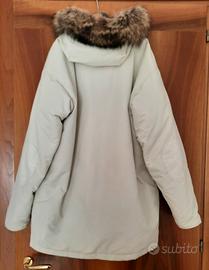 Parka- piumino lungo color panna- beige chiaro. Ha le toppe sulle maniche Usato poco