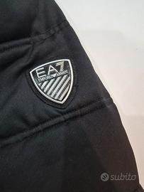 Patch logo scudo EA7 gommato/metallizzato sulla manica sinistra e/o sul petto (visibile nella foto).