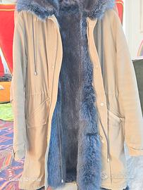 vendo meraviglioso parka verde militare con interno rivestito totalmente in volpe blu elettrico. indossato 3 volte
