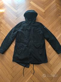Giubbotto parka di Tommy Hilfiger nero con cappuccio. Il pelo interno è rimovibile, così che sia più pesante per l'inverno o più leggero per la primavera. Taglia XL. Misure: spalle 48 cm, petto 62 cm, lunghezza parka 84 cm davanti, 93 cm dietro. indossato pochissimo.
