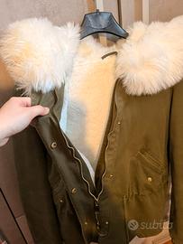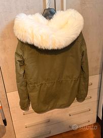 Parka verde militare molto caldo e comodo, perfetto per l’inverno. Ha un bellissimo cappuccio con pelliccia bianca morbida, che lo rende elegante e particolare. ✨ Dettagli: •Colore: verde militare •Cappuccio con pelliccia bianca morbida •Chiusura con zip e bottoni •Coulisse in vita per regolare la vestibilità •Tasche laterali •Interno caldo Il giubbotto è in buone condizioni, usato ma tenuto bene. #parka #giubbottodonna #inverno #pelliccia #verdeMilitare #cappotto