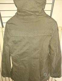 Prezzo Ribassato da 15 a 7 € Parka verde militare con fodera interna bianca. Taglia M. Un capo versatile ideale per la stagione invernale. Questo modello presenta un design classico con chiusura a zip e bottoni, tasche anteriori e un cappuccio foderato. Caratteristiche del Prodotto