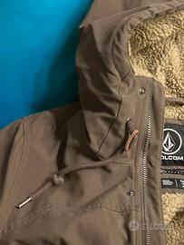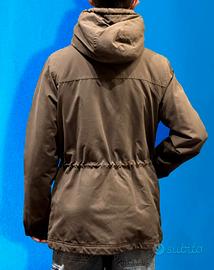 Giaccone con pelo all'interno e nel cappuccio. Chiusura con cerniera coperta da bottoni automatici. Quattro tasche esterne con patta, una tasca interna. Cappuccio con coulisse. Coulisse interna per regolare la vita. Polsini regolabili con doppio bottone automatico. Composizione: 50% cotone, 42% poliestere, 8% nylon
