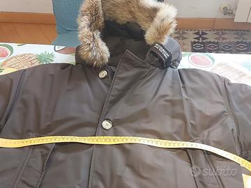 Parka Woolrich Arctic Parka John Rich & Bros – Marrone – Taglia XL (Ottime Condizioni) In vendita l'iconico Woolrich Arctic Parka, il punto di riferimento per chi cerca stile intramontabile e calore estremo. Questo modello appartiene alla linea John Rich & Bros, celebre per l'alta qualità dei materiali e la cura dei dettagli. Caratteristiche principali: Modello: Arctic Parka (con cappuccio rifinito in vera pelliccia). Colore: Marrone scuro / Testa di moro (elegante e versatile). Imbottitura: Vera piuma d’oca per un isolamento termico eccellente. Tessuto Esterno: Ramar Cloth idrorepellente e resistente al vento. Dettagli: Chiusura con zip e bottoni, tasche scaldamani superiori e ampie tasche a toppa inferiori con patta. Condizioni e Misure: Il capo è in ottime condizioni generali, mantenuto con cura. Per garantire la massima trasparenza, ecco le misure precise prese in piano (come da foto): Larghezza Spalle: circa 48-50 cm. Larghezza Torace (Ascella-Ascella): circa 60 cm. Vestibilità: Regolare (Taglia XL .
